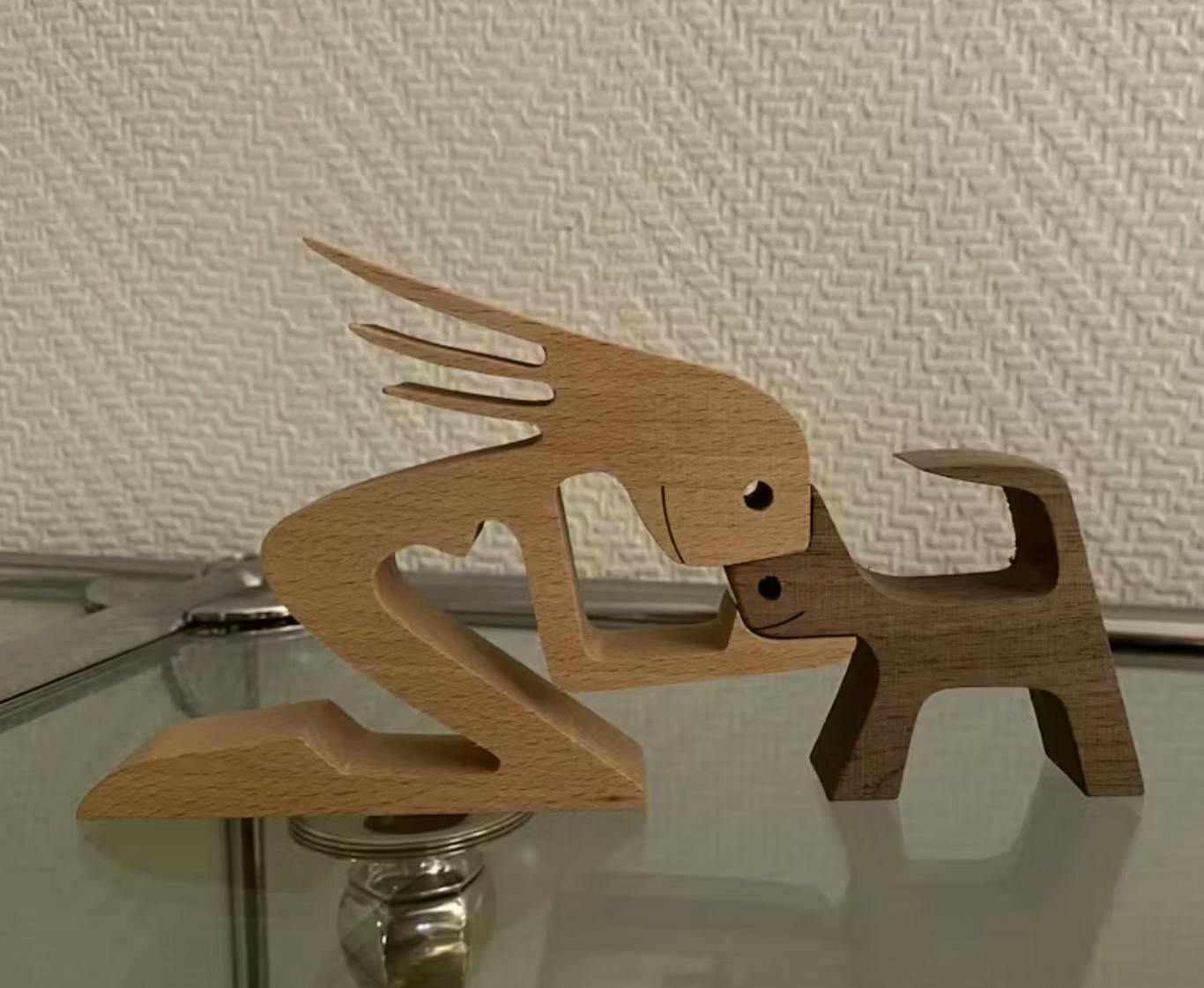 This exquisite wooden sculpture captures the tender bond between a pet owner and their beloved cat. Made from natural beech and walnut wood, the design is a harmonious blend of simplicity and emotion, celebrating the love we share with our furry friends. Whether it's a gift for Mother's Day, Father's Day, Birthday, Christmas, a keepsake for cat lovers, or a charming home décor piece, this artwork radiates warmth and artistic elegance.